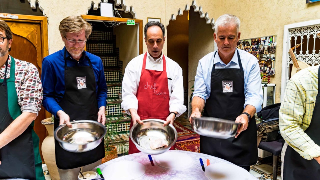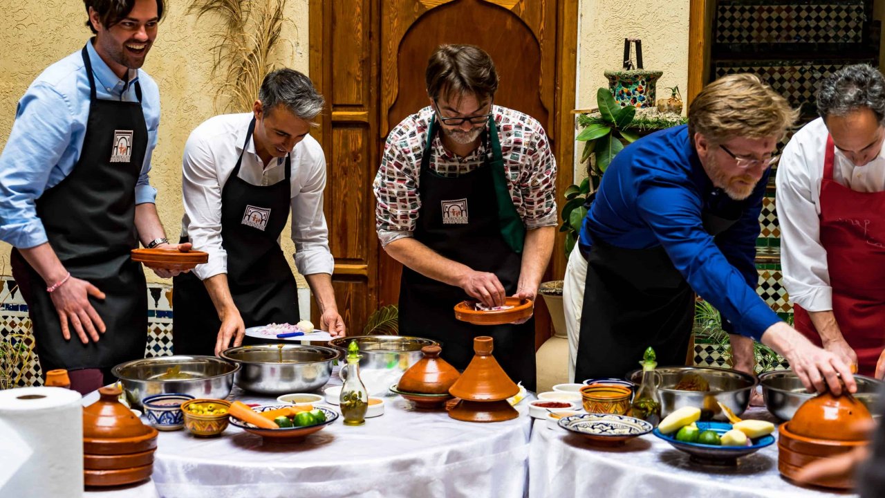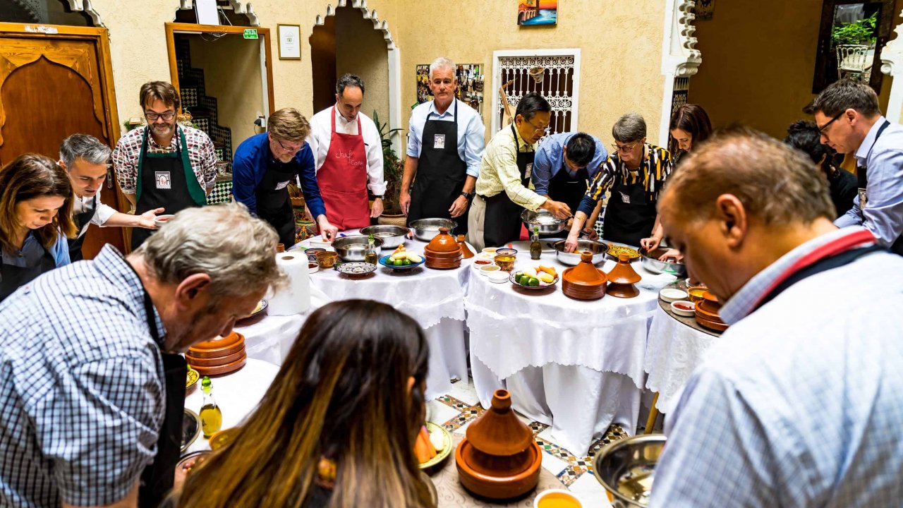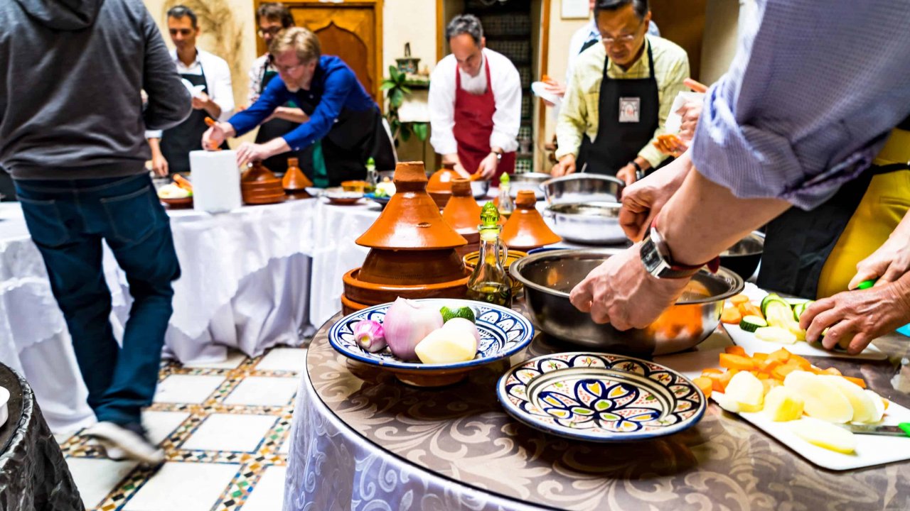With our shopping in the market done, next, enjoy a warm welcome at a historic family-owned Riad. Here, you'll join the chef's brigade and uncover the gastronomic secrets of Rabat. Learn Moroccan cooking techniques and create gourmet dishes in a lively, interactive setting.
